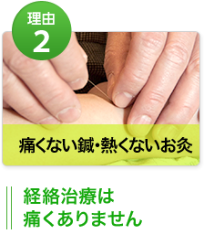 気の調整を行う経絡治療は、髪の毛ほどの細さのはりを用い、多くの場合皮膚表面に触れるだけで治療ができます。お灸はここちよい温灸です。痛くないはりと熱くないお灸であなたの苦痛を取り除きます。